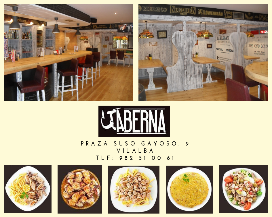Cervecería, raxería, comida caseira, menú do día. Cervexa en depósito, tortillas, carta de pastas, ensaladas, bocadillos, hamburguesas… Especialistas en raxo, chuletón e polbo. Aceptase o pago con tarxeta. Aberto todos os días da semana.